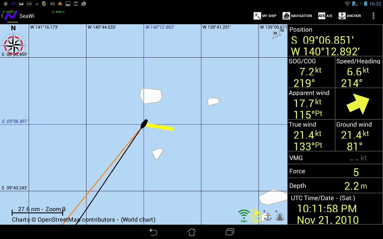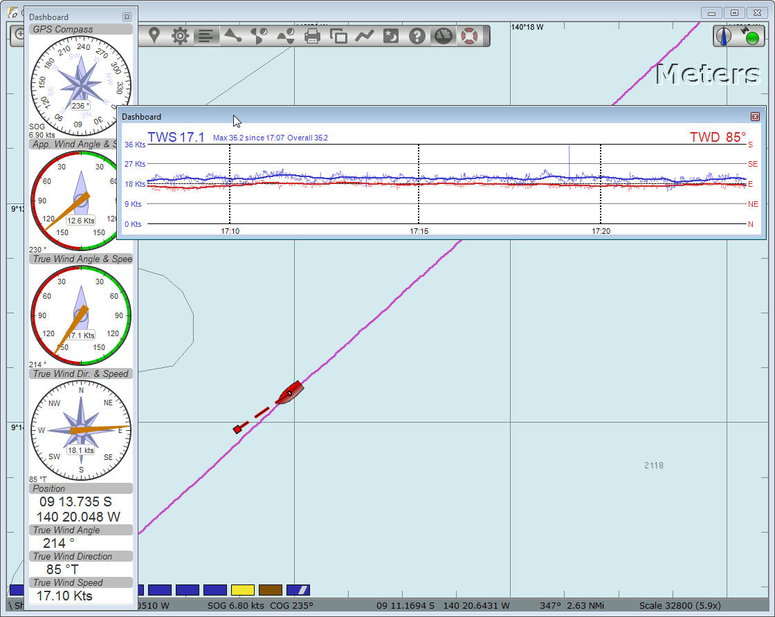 On the laptop, using TCP to get the data from the Raspberry PI, simultaneously using the Graphical Console, and OpenCPN.